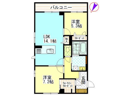 洋室5.4畳 洋室7.2畳 LDK14.1畳 |