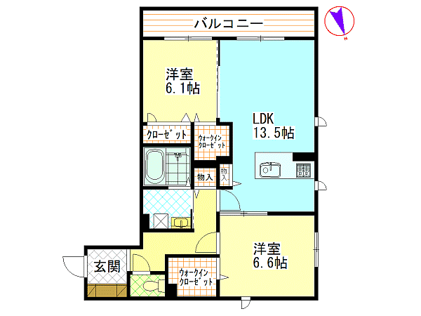 洋室6.1畳 洋室6.6畳 LDK13.5畳 |