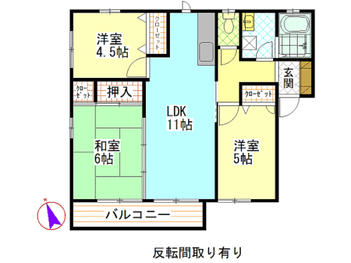 間取内容 和室6畳   洋室4.5畳   洋室5畳   LDK11畳
