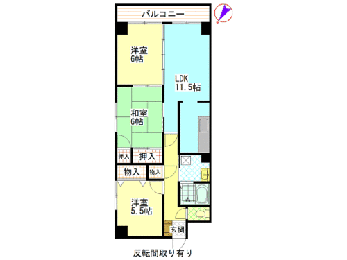 和室6畳 洋室5.5畳 洋室6畳 LDK11.5畳 |