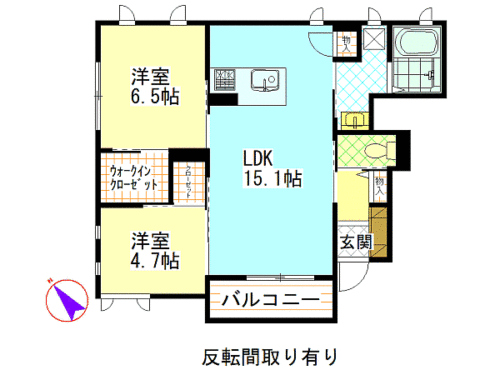 洋室4.7畳 洋室6.5畳 LDK15.1畳 |