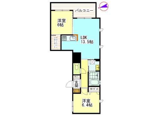 洋室6畳 洋室6.4畳 LDK13.5畳 |