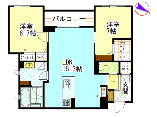 洋室6.7畳 洋室7畳 LDK15.3畳 |