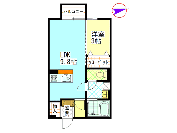 間取内容 洋室3畳   LDK9.8畳