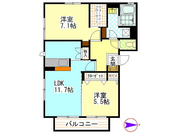 | 間取内容 | 洋室5.5畳 洋室7.1畳 LDK11.7畳 | ||