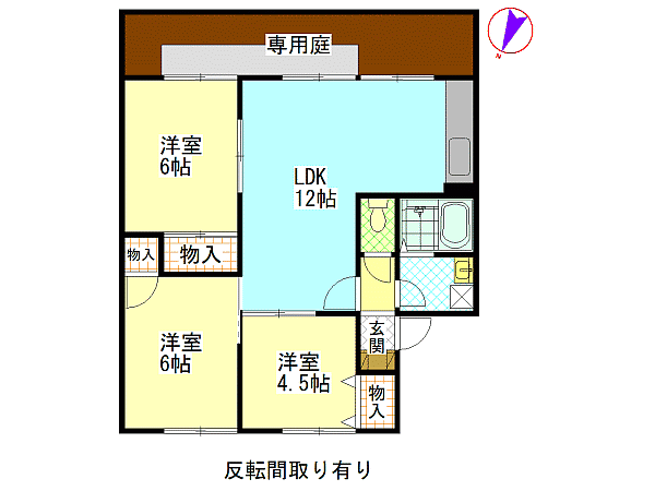 | 間取内容 | 洋室4.5畳 洋室6畳 洋室6畳 LDK12畳 | ||