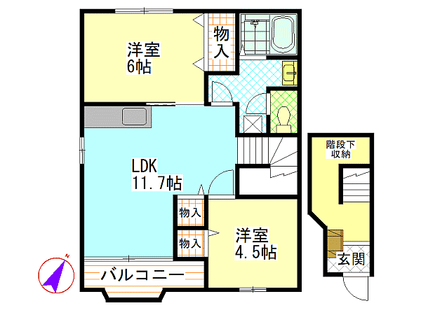 | 間取内容 | 洋室4.5畳 洋室6畳 LDK11.7畳 | ||