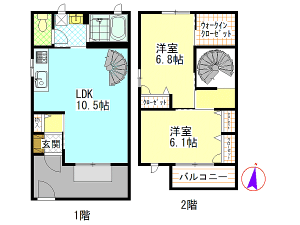 間取内容 | 洋室6.1畳 洋室6.8畳 LDK10.5畳 | ||
