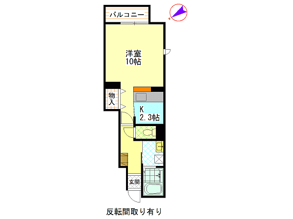 | 間取内容 | 洋室10畳 K2.3畳 | ||